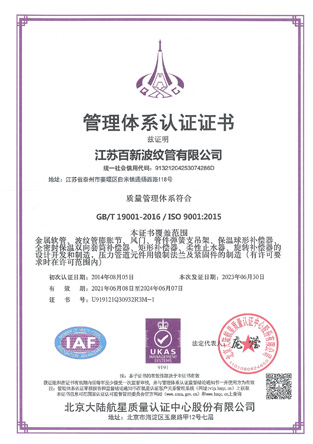 江蘇百新波紋管有限公司是特種設(shè)備(壓力管道元件)B1級許可制造單位,專業(yè)生產(chǎn)金屬軟管、波紋膨脹節(jié)、旋轉(zhuǎn)補(bǔ)償器、套筒補(bǔ)償器、球形補(bǔ)償器、彈簧支吊架等壓力管道元件。公司是中石化、中石油、中海油推薦產(chǎn)品配供定點(diǎn)企業(yè),在行業(yè)是全國聯(lián)合會常務(wù)理事單位、中國石油化工設(shè)備協(xié)會膨脹節(jié)分會會員,中國壓力容器學(xué)會會員,中國機(jī)械工程學(xué)會壓力容器分會膨脹節(jié)專業(yè)委員會會員單位。 我公司產(chǎn)品的設(shè)計(jì)計(jì)算嚴(yán)格按照美國膨脹節(jié)制造商協(xié)會《EJMA》、GB/T12777-2019《金屬波紋管膨脹節(jié)通用技術(shù)條件》、GB/T16749-2018《壓力容器波形膨脹節(jié)》